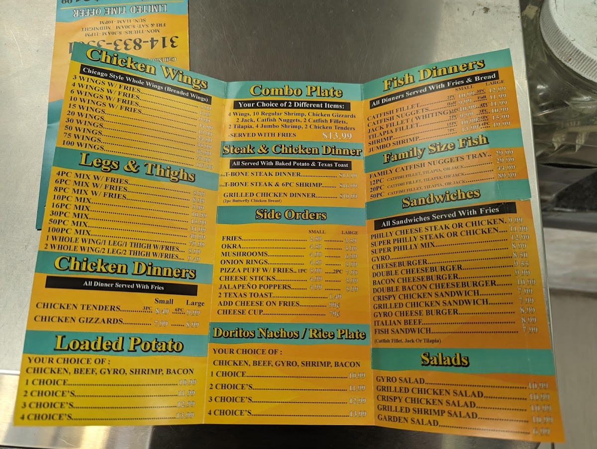 Welcome to St.Louis Fish & Chicken Grill - NORTH OAKS PLAZA, where vibrant flavors meet down-home comfort. Located at 149 N Oaks Plaza, St. Louis, this hidden gem is a favorite among locals, known for its quick service and friendly atmosphere.